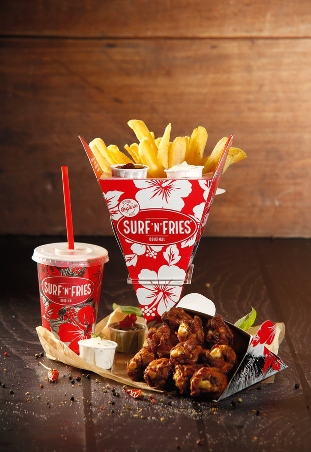 Surf'n'Fries предлагает изысканный картофель-фри в упаковке в форме конуса с 30 соусами и дополнительными блюдами на выбор. Мы пересмотрели концепцию изготовления бельгийского картофеля-фри и разработали специальную упаковку и уникальную картофельную нарезку.