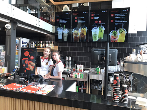В меню заведения можно найти любимые и узнаваемые по всему миру блюда из национальных кухонь. В кафе имеется сбалансированное детское меню, завтрак, еженедельно обновляемый ланч, кофе фирменной обжарки, удобная зона TO GO. За общими для всей франшизы требованиями к приготовлению пищи следит шеф-повар с международным опытом, родом из Литвы. Традиционно городское кафе будет работать по трём направлениям: в зале, с собой и с доставкой.